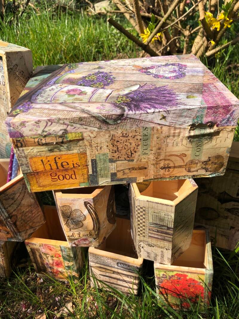 From pen holders can change their intended use by becoming holders for toothbrushes, brushes, makeup... The boxes can become letter holder, a jewel holder or simply a beautiful object to embellish a corner of your House.